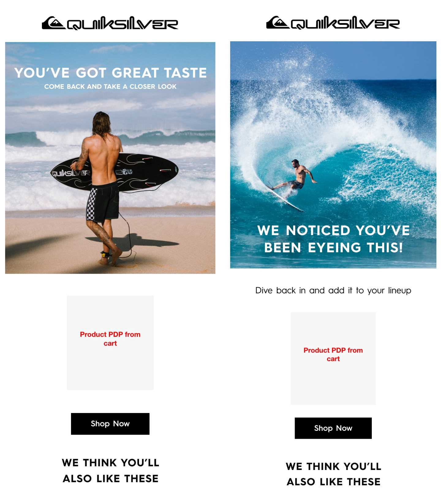 ABANDON CART FLOW (EXISTING & NEW CUSTOMERS) FOR QUIKSILVER